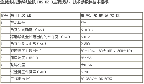 TNS- EZ 1A線材扭轉(zhuǎn)試驗(yàn)機(jī),是我公司研制的一種數(shù)顯式新型金屬線材扭轉(zhuǎn)試驗(yàn)機(jī)。該試驗(yàn)機(jī)有三種旋轉(zhuǎn)速度:60;180;300轉(zhuǎn)/分,適用于直徑φ0.1~<φ1.0mm的金屬線材扭轉(zhuǎn)試驗(yàn)。可測定線材單向或雙向扭轉(zhuǎn)中承受塑性變形的能力,及顯示線材表面和內(nèi)部缺陷。為生產(chǎn)線材、使用線材的單位提供了可靠的測量手段。